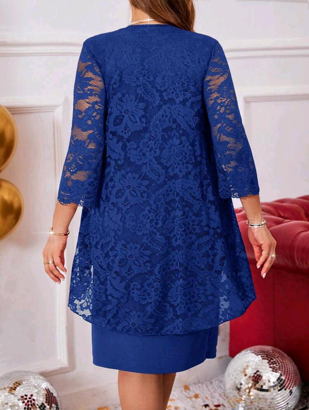 Valorizza le tue forme con questo elegante abito da donna taglia curvy in raffinato colore blu intenso, perfetto per cerimonie, eventi e occasioni speciali.